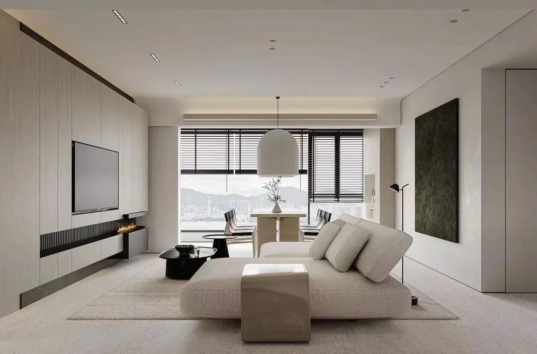 将两个空间合并为一个空间,减少实体墙面的阻隔,可以让空间更大。例如客餐厅一体设计,将空间打穿,大面积的开阔领域呈现在眼前,整体的公共区域看起来就更加宽敞大气。